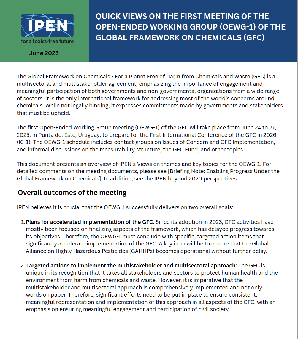 This document presents an overview of IPEN´s Views on themes and key topics for the OEWG-1.